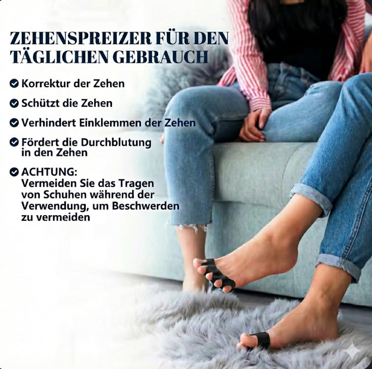 Wir empfehlen die Nutzung vor allem ohne Schuhe (barfuß oder in Socken), um den besten Entspannungseffekt zu erzielen. Die Spreizer sind ideal für den Feierabend auf der Couch oder im Home-Office. In sehr weiten Schuhen (z.B. Sneaker mit breiter Box) ist das Tragen möglich, aber die primäre Anwendung ist Ihre „Home-Wellness-Zeit“.
